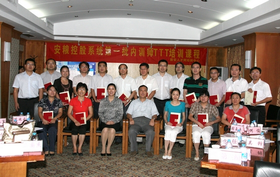 為科學(xué)開(kāi)發(fā)、有效講授培訓(xùn)課程,提高內(nèi)訓(xùn)師專業(yè)水平, 9月1—2日在合肥新世紀(jì)酒店,經(jīng)過(guò)公司本部和五大子公司推薦選拔的安糧控股系統(tǒng)首批內(nèi)訓(xùn)師20余人,參加了為期兩天的內(nèi)訓(xùn)師TTT培訓(xùn)。葛志毅副總裁到會(huì),代表公司為內(nèi)訓(xùn)師頒發(fā)了聘書(shū)并講話。