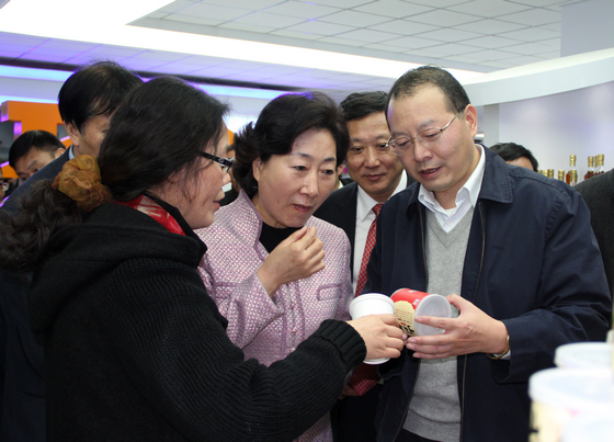 花建慧副省長(中)蒞臨安糧實業(yè)展廳并品嘗產(chǎn)品