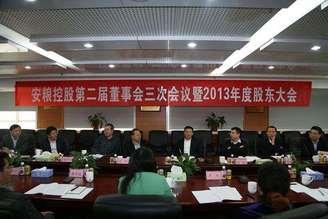 4月13日,公司召開安糧控股第二屆董事會第三次會議暨2013年度股東大會。公司董事會成員包祥華、桂冠、李錦鐸、方宗友、曹訓立、宋恩君參加會議。監(jiān)事會成員陳素萍、黃學良、石紅及經(jīng)營層成員儲潔印、潘冬生、張來往列席會議。國貿(mào)集團范陽董事長應邀出席會議。會議由董事長主持。