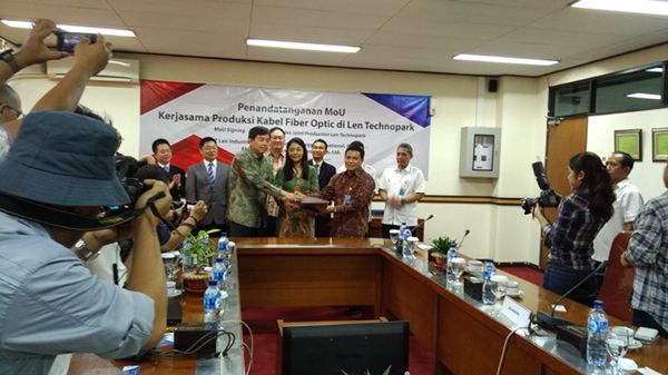 7月29日,在印度尼西亞萬隆市,安糧國際朱亮董事長與PT Len Industri (Persero)公司總裁亞伯拉罕、PT Newstar Energy Indonesia公司總經(jīng)理絲麗共同簽署了光纜業(yè)務(wù)合作備忘錄。三方將在設(shè)計、裝配以及制造等方面全面進(jìn)行合作,以滿足印尼國內(nèi)不斷增長的光纜需求,并逐步拓展其他東南亞國家市場。