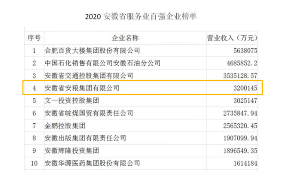 安糧集團(tuán)位列安徽省服務(wù)業(yè)百?gòu)?qiáng)企業(yè)第4位