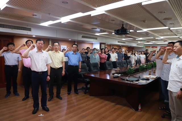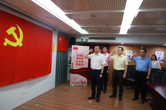 (曹訓立帶領安糧集團黨委班子、集團直屬黨支部、安糧控股黨支部重溫入黨誓詞)