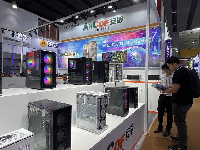 南方一部在本屆廣交會(huì)一期主要參展游戲電腦機(jī)箱產(chǎn)品,從入門級(jí)到高端游戲機(jī)箱齊全。部門在營銷展示上采用一系列新穎的形式,展臺(tái)的主通道采用目前比較流行的魚缸游戲機(jī)箱作為看點(diǎn),用可藍(lán)牙連接手機(jī)和電腦的高端游戲機(jī)箱吸引客戶。為了突出參展效果,所有游戲機(jī)箱都裝上了RGB變色風(fēng)扇。多樣化的變色風(fēng)扇與南方二部的機(jī)械鍵盤吸引了大量客戶駐足觀看。消費(fèi)電子展6個(gè)攤位,突出游戲類產(chǎn)品的裝修風(fēng)格,搭配大氣的門頭、顯眼的海報(bào)燈箱,使客戶在進(jìn)館時(shí)只需一眼就能夠鎖定目光。