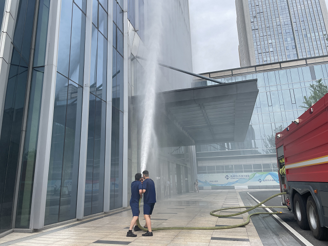 6月24日下午3時(shí),消防應(yīng)急演練總指揮下達(dá)演練開(kāi)始指令。隨著煙霧彈在辦公樓內(nèi)拋擲,煙霧觸發(fā)安糧中心辦公樓火警警報(bào),頓時(shí)消防警報(bào)和消防警鈴響起。隨后各小組迅速按照部署展開(kāi)滅火救援行動(dòng),消防和應(yīng)急救援隊(duì)員有序引導(dǎo)員工緊急疏散撤離至避難層,緊接著包河區(qū)應(yīng)急救援大隊(duì)消防救援車(chē)輛到達(dá)現(xiàn)場(chǎng),開(kāi)展了火情偵查、外圍滅火等系列滅火救援行動(dòng)。整個(gè)演練過(guò)程中,各小組配合默契、分工有序,圓滿完成了緊急報(bào)警、警戒疏散、醫(yī)療救護(hù)和滅火救援等演練環(huán)節(jié),及時(shí)排除了火災(zāi)險(xiǎn)情,有效達(dá)到了演練目的和預(yù)期效果。
