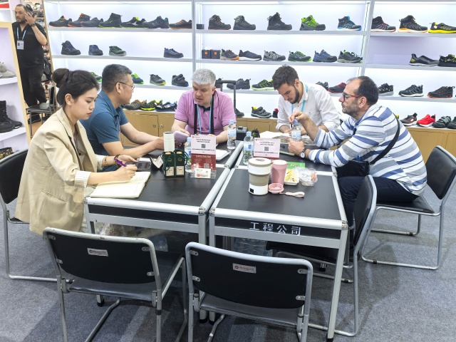 鞋類展區(qū)以“創(chuàng)新科技,時(shí)尚出行”為主題,集中呈現(xiàn)了運(yùn)動(dòng)休閑、戶外功能等多類產(chǎn)品。主打的輕便安全鞋采用先進(jìn)的減震與防護(hù)技術(shù),兼具輕量化與高強(qiáng)度特性,獲得歐美客戶的高度認(rèn)可,開(kāi)展首日就迎來(lái)大量客戶詢價(jià)洽談;使用環(huán)保耐磨材料制成的雪地靴,憑借出色的保暖與防滑優(yōu)勢(shì),成為北歐市場(chǎng)的潛力爆品。