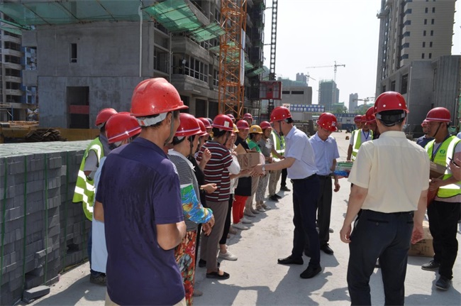 時至大暑,日盛三伏。23日上午9點,曹訓立書記一行來到由總承包分公司承建的濱湖碧桂公館項目部,慰問鏖戰(zhàn)酷夏的一線職工,為他們送去防暑降溫慰問品。曹訓立書記與總承包分公司及項目主要負責人進行了細致交流,叮囑公司和項目部要做好防暑降溫工作,合理安排施工時段,盡量避開高溫天氣,注意勞逸結(jié)合,給一線員工創(chuàng)造良好的工作環(huán)境,確保員工身體健康和施工安全,保障各項目工作有條不紊地開展。